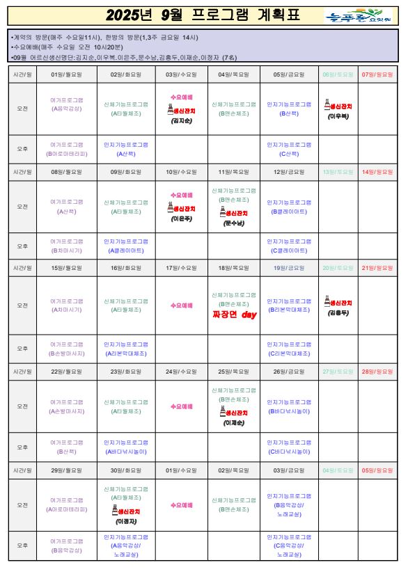 25.09 프로그램 계획표